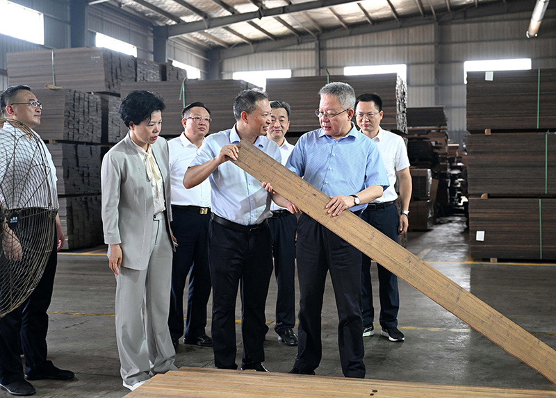 2025年6月16日,省政協(xié)副主席虢正貴來湖南桃花江竹材科技股份有限公司調研生態(tài)資源轉化與特色產(chǎn)業(yè)融合發(fā)展。公司董事長、省人大代表薛志成陪同并介紹情況。虢正貴充分肯定了桃花江竹材在竹資源利用及竹特色產(chǎn)業(yè)融合發(fā)展所取得的成果,他鼓勵企業(yè)繼續(xù)發(fā)揮龍頭優(yōu)勢,充分利用好桃江資源稟賦和產(chǎn)業(yè)優(yōu)勢,深化產(chǎn)學研融合,提升竹產(chǎn)業(yè)附加值,為民族地區(qū)生態(tài)資源高效轉化和特色產(chǎn)業(yè)融合發(fā)展探索更多經(jīng)驗。