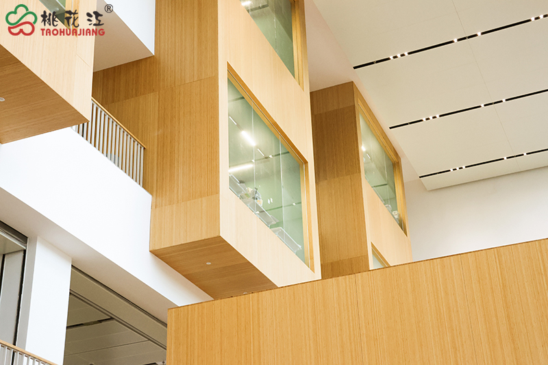 信陽學院南湖校區(qū)位于河南省信陽市南灣湖風景區(qū)科教園區(qū),占地面積約1300畝,建筑面積約69萬平方米。項目中,從教學樓的裝飾,到圖書館和學生休閑區(qū)的打造,充分發(fā)揮了桃花江任意竹?的特質,將竹材的天然美學與科技工藝融入室內空間,以地板、墻板、扶手等為載體,詮釋了“竹文化”,打造出兼具文化厚度與功能硬度的綠色空間。這種清新自然,環(huán)保舒適的生活學習環(huán)境,既充滿人文關懷,又不失創(chuàng)新精神,完美契合了校區(qū)的設計理念:“崇尚自然、追求卓越、引領創(chuàng)新的山水校園,創(chuàng)建生活學習一體化社區(qū),創(chuàng)造領先靈活的學習環(huán)境”。......